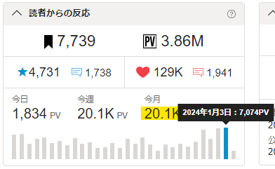 🖋累計は386万PVを超え、今月分も20kを突破!🎉✨