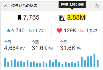 🖋おかげさまで累計PVが3.88Mに到達!😃