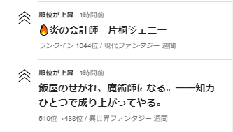 🖋異世界ファンタジー部門週間ランキング:510位→488位。🎉✨