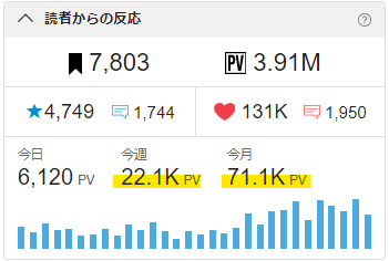 【記録用】1月平均、今週平均のどちらも7kPV/日をクリア!😃