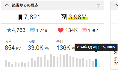 🖋累計PVがいよいよ3.98Mを突破。🎉✨ 400万が見えてきた。👀