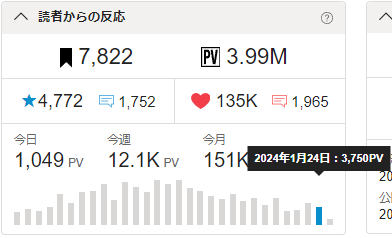 🖋累計PVの方が3999kを超えていて、もうすぐ400万到達。