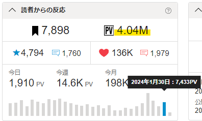 🖋累計PVが4.04Mを突破!🎉✨ どこまででも伸びて行け!💪😊