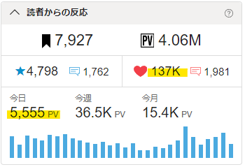 🖋今日のPVが「5並び」のゾロ目に。😃