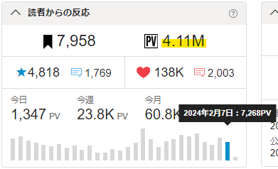 🖋おかげさまで累計PVが4.11Mを超えました。🎉✨