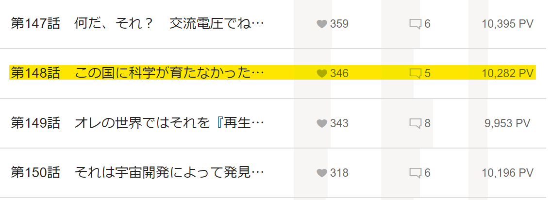 🖊従来#143までだった10k超えのエピソード。一気に#148まで伸びました。