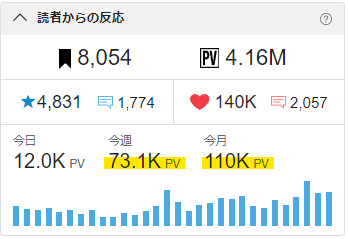 🖋今週分PVも73kを超え、10kPV/日をクリアしています。👍