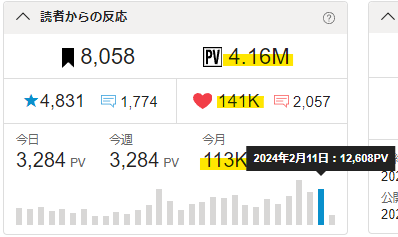 🖋累計PVが4.16Mを突破!🎉✨ 力強い。