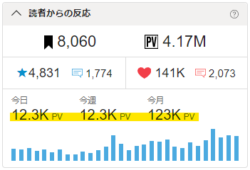 🖋今月のPVが120kを越えて、12日平均で10k/日を確保しましたね。😃