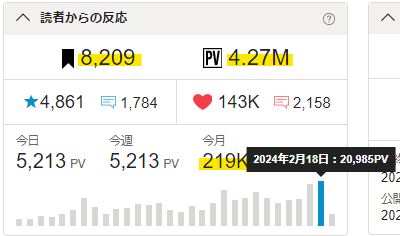 🖋累計PVは427万まで進みました。(今日の日付だけど)