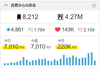 🖋今月のPVが、20日にして既に220kを突破!🎉✨