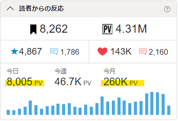 【記録用】16:07時点で本日8000PV突破。