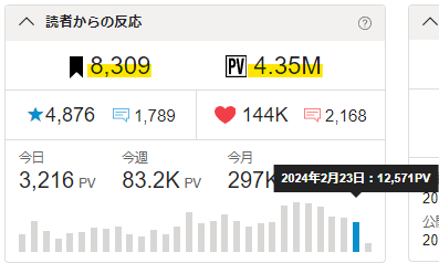 🖋昨日のPVは12571。16日連続10kPV超えを達成。🎉✨