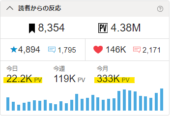 🖋今日のPVが22.2k、今月のPVが333kを突破。良い勢いです。🎉✨