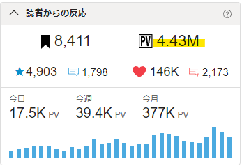 🖋22:00、累計443万PV突破を確認。🎉✨