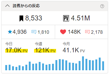 【記録用】順調なり。今日のPV17kを突破!🎉✨