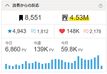 🖋休日モードでダラダラしていたら、累計PVが4.53Mを突破していました。🎉✨