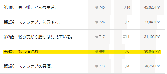 第5話も29kPVを超えており、連続記録を伸ばそうというところ。