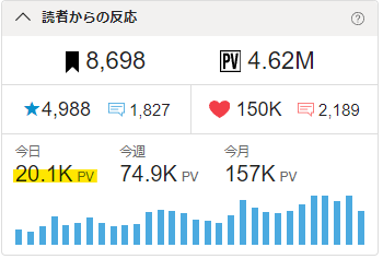 🖋17:37時点で今日のPV20k超えを確認。🎉✨