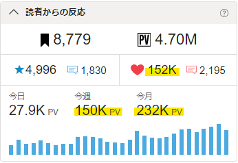 🖋今週のPVが150kを突破!