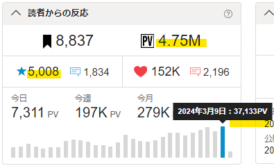 🖋累計PVが4.75Mを超えました!🎉✨ めざせ、500万PV!🌈😊