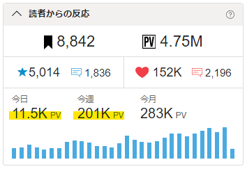 🖋今週のPVは201kを超えました!🎉✨ 週20万超え達成!😃