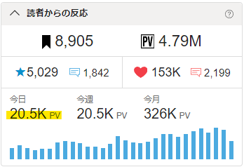 🖋16:12時点で、今日のPVが20.5kを超えていることを確認。👍