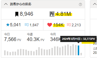 🖋累計PVは(今日に入って)4.81Mを超えました。🎉✨