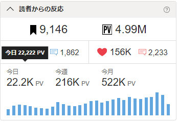 一応縁起物。今日のPVが22222。🎉✨