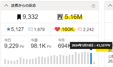 🖋累計PVが5.16Mを超えました。🎉✨ (今日の日付)