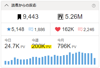 🖋今週5日間のPVが200kを超えました。🎉✨