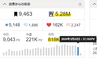 🖋累計PVは5.28Mを超えました。🎉✨ (今日の日付)