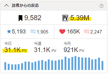 🖋累計PVが5.39Mを超えました。🎉✨