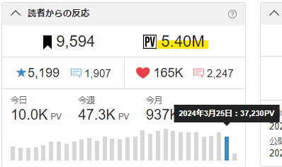🖋累計PVが5.40Mを超えました。🎉✨ (今日の日付)