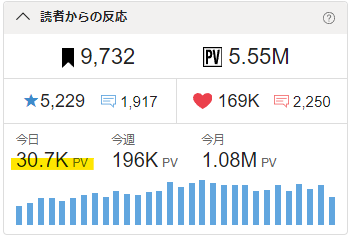 しかし、記念の「累計5,555,555PV」はスクショに撮れず。😢