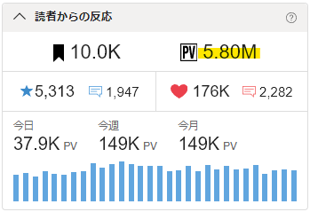 🖋累計PVが5.80Mを超えました。🎉✨