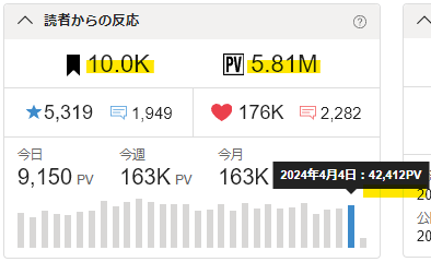 🖋昨日のPVは42412。5日ぶりに4万PVを超えました。🎉✨