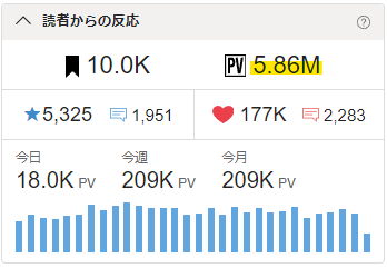 🖋累計PVが5.86Mを超えました。🎉✨