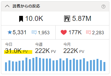 累計587万PV、10000フォロワー、★5300、💗177kの実績を引っさげて、毎週火木土、絶賛公開中!✨