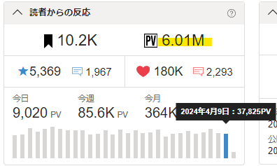 🖋昨日のPVは37825。もちろん素晴らしいんですが、4万を超えてほしかった?
