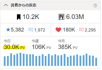 累計603万PV、10000フォロワー、★5300、💗180kの実績を引っさげて、毎週火木土、絶賛公開中!✨
