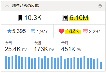 累計610万PV、10000フォロワー、★5300、💗182kの実績を引っさげて、毎週火木土、絶賛公開中!✨