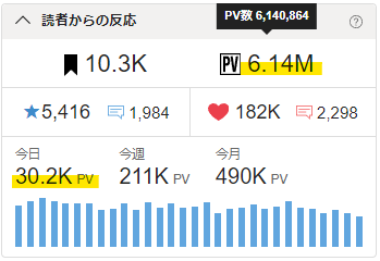 🖋累計PVが6.14Mを超えました。🎉✨