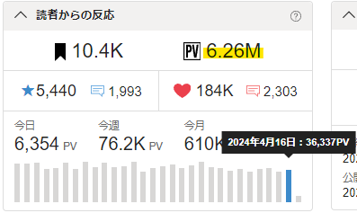 🖋累計PVが6.26Mを超えました。🎉✨ (今日の日付)