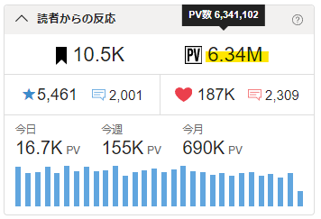 🖋累計PVが6.34Mを超えました。🎉✨
