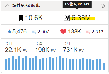 🖋累計PVが6.38Mを超えました。🎉✨