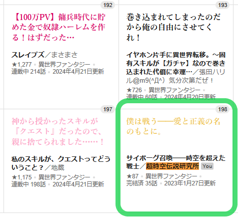 完結済の作品としては大健闘じゃないでしょうか。👍