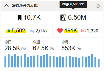 🖋4月度目標:累計PV6,666,666まで、あと162,745。