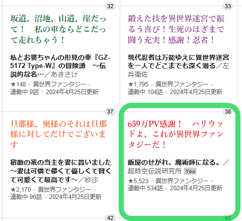 今朝のランキング。長期完結済作品の小さな動き。