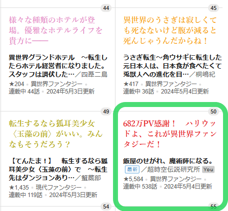 📈前日44位→50位に後退。